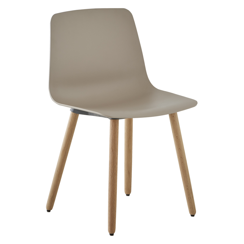 Chair with polypropylene seat shell and 4 leg frame in solid oak, reinforced with an inner steel structure. Greenguard Certified.