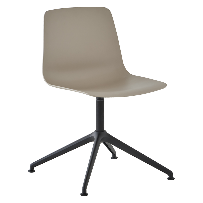 Swivel chair with polypropylene seat shell and 4 spoke swivel base made of cast aluminum alloy. The seat height is not adjustable. Greenguard Certified.