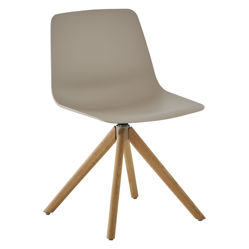 Swivel chair with polypropylene seat shell and 4 spoke swivel oak base, reinforced with an inner steel structure. The seat height is not adjustable. Greenguard Certified.