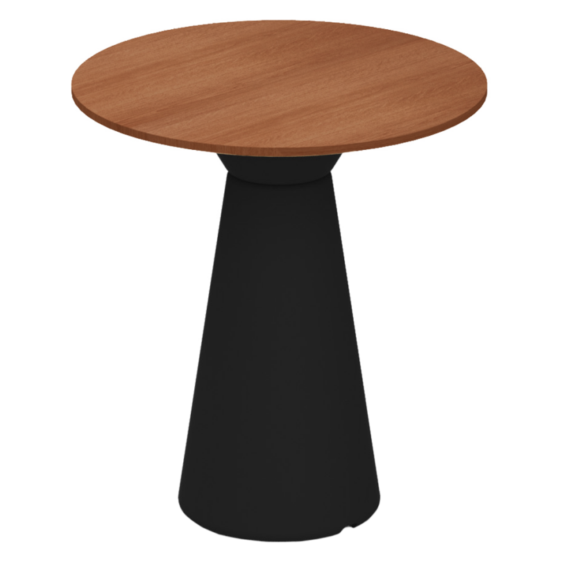 Round polyethylene base with round walnut top. The inner counterweight is included.