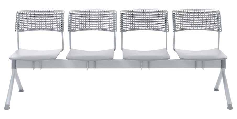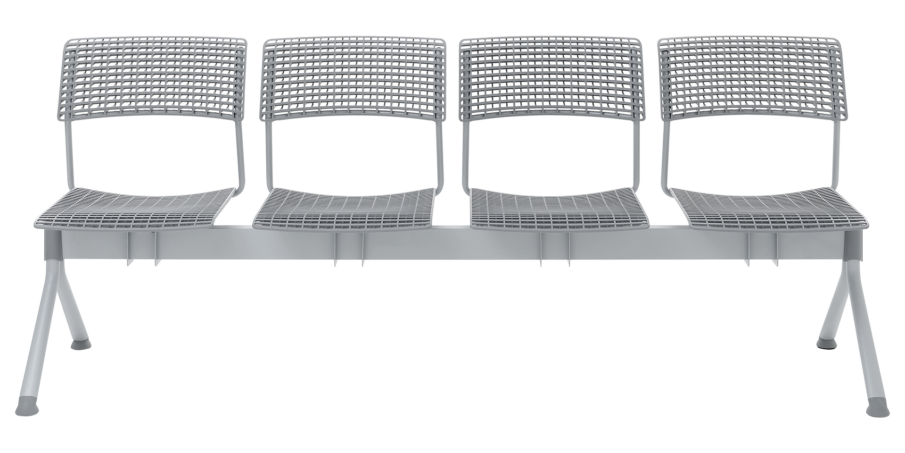 4 seat bench with steel frame and 3D polypropylene mesh seat & back.