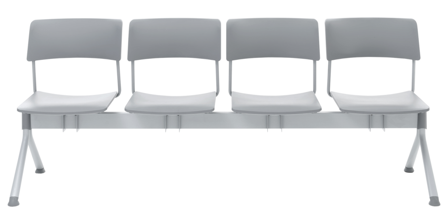 4 seat bench with steel frame and solid polypropylene seat & back.