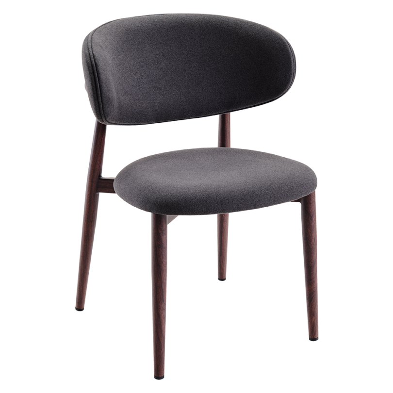Woodlook sidechair with frame manufactured entirely from aluminum but with realistic appearance of wood.