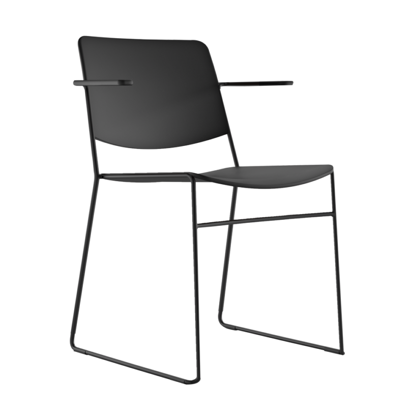 Stacking high density stacking armchair with metal frame, polyolefin seat and back. Tested to 300lbs weight load.