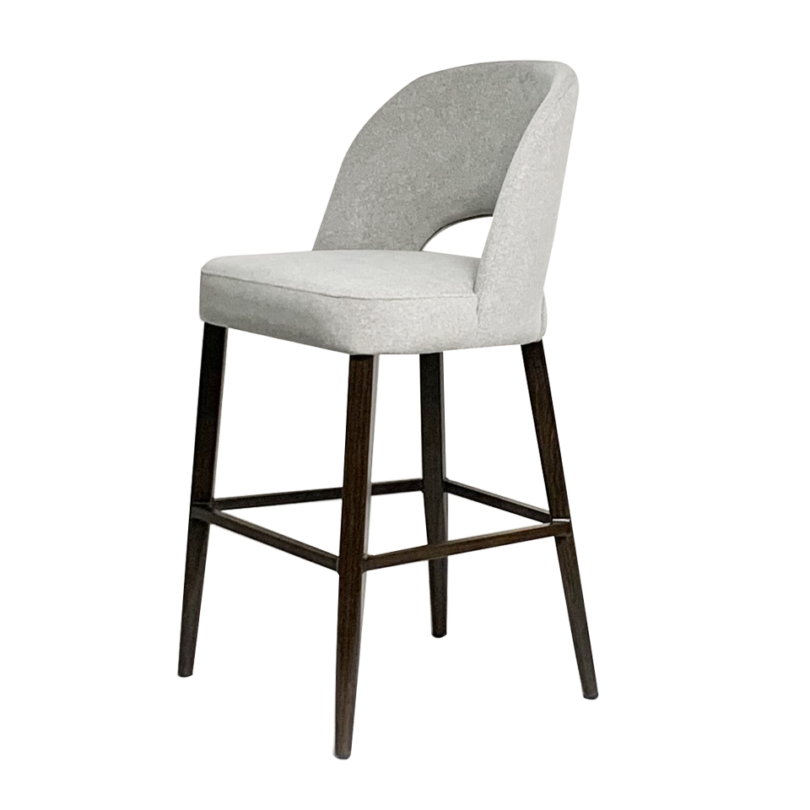 Woodlook barstool with frame manufactured entirely from aluminum but with realistic appearance of wood.
