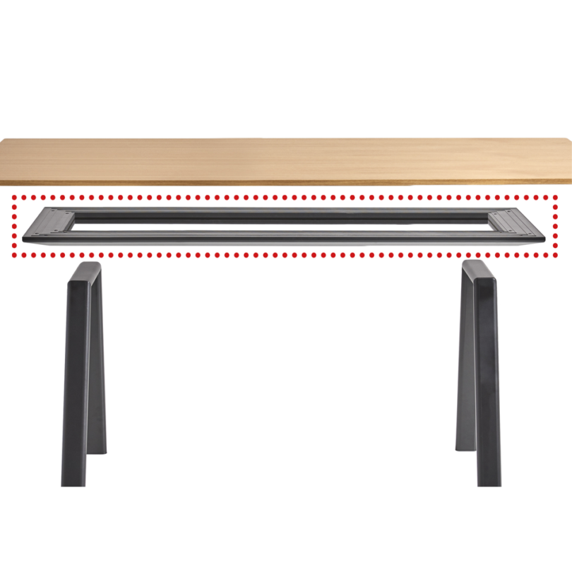 Aluminum structural frame for 36″ x 72″ Plania table top. Assembly required