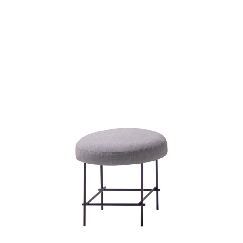 Ottoman on steel frame with upholstered seat. 50cm / 20″ diameter.