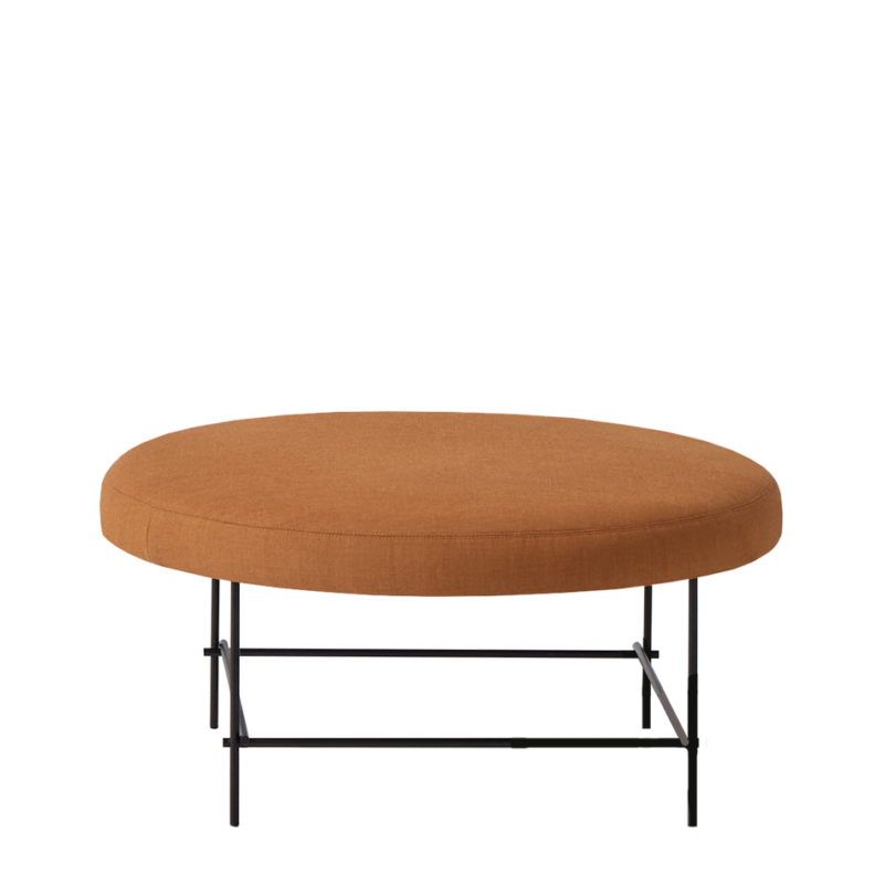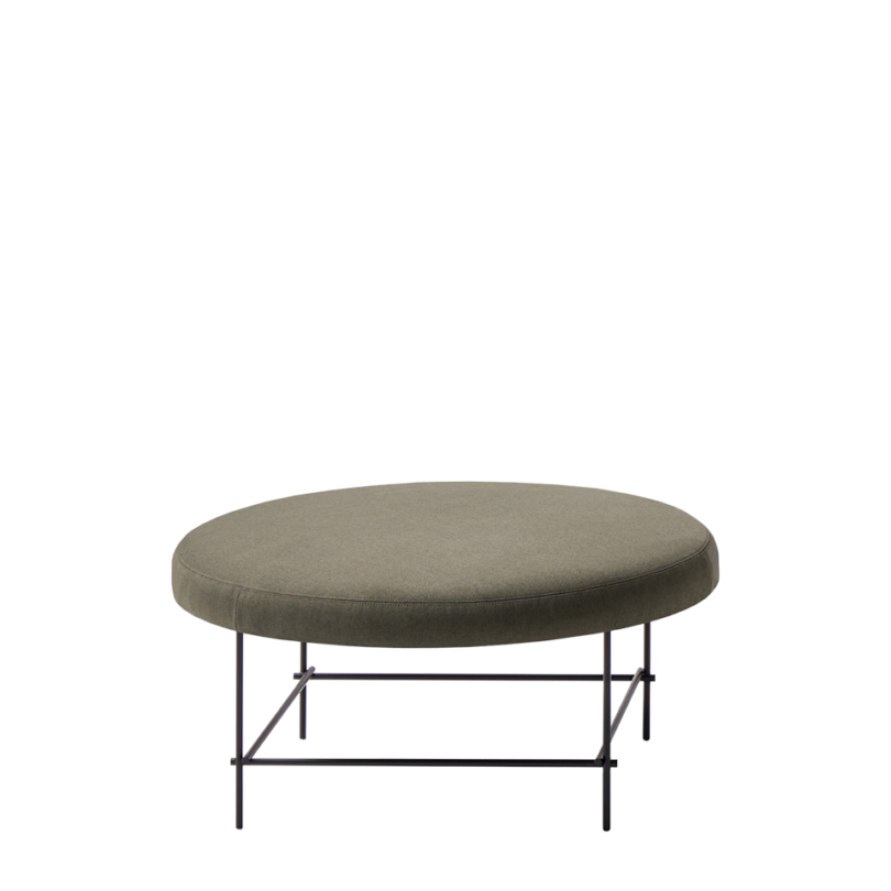 Ottoman on steel frame with upholstered seat. 100cm / 40″ diameter.