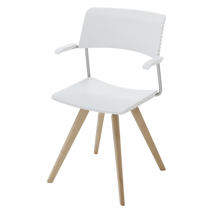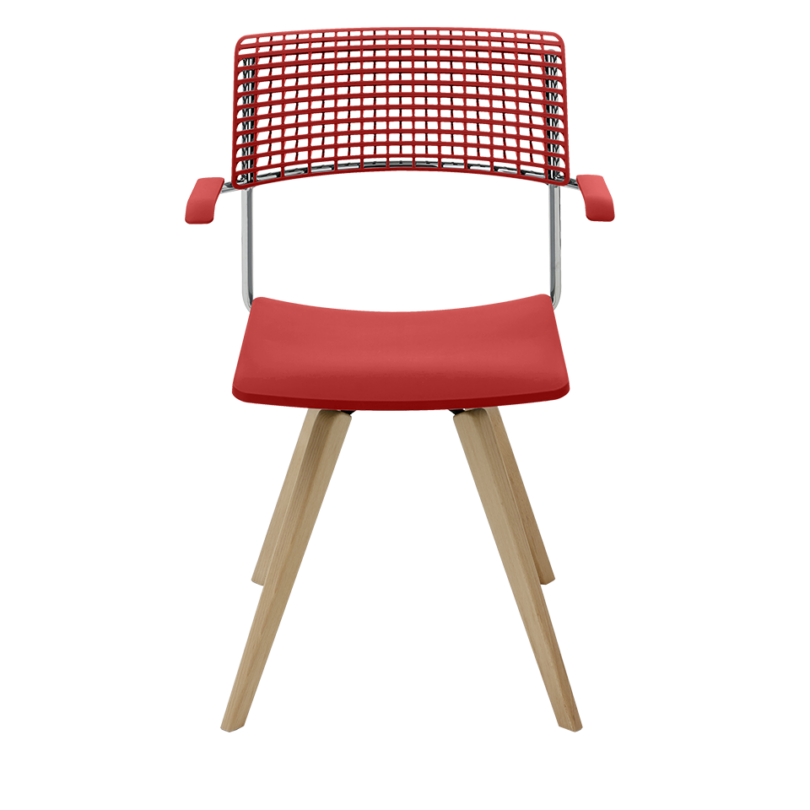 Armchair on wood legs with steel frame and solid polypropylene seat & back.