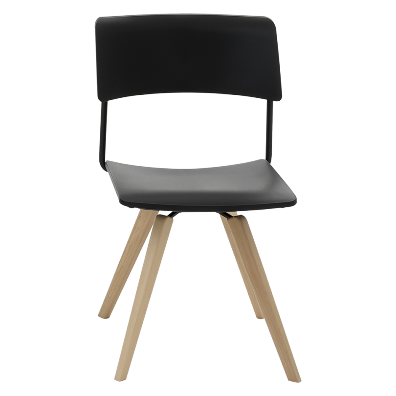 Sidechair on wood legs with steel frame and solid polypropylene seat & back.