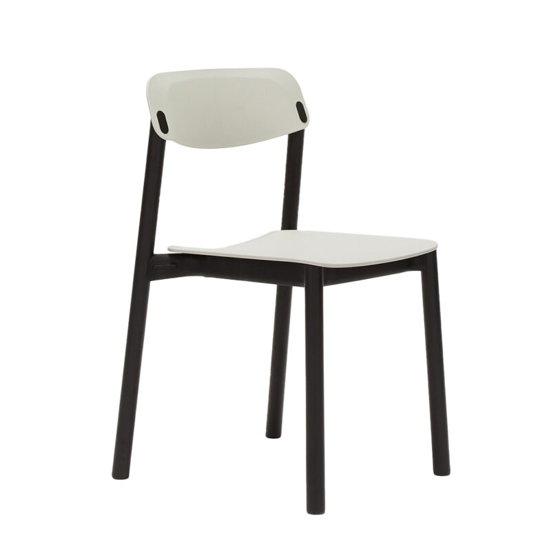 Stackable sidechair with epoxy powdercoat frame and seat & back in oak or ash
