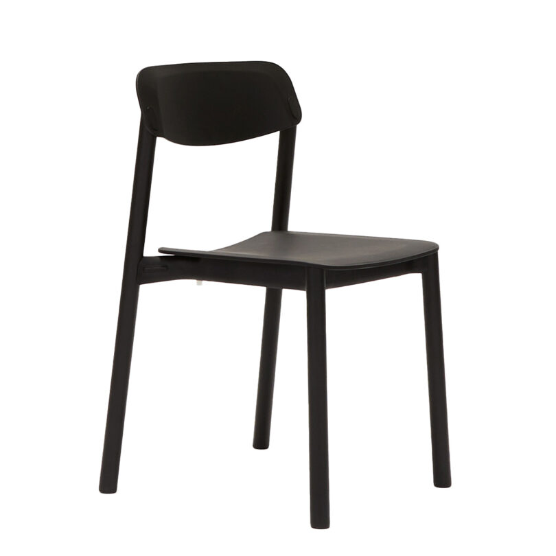 Stackable sidechair with epoxy powdercoat frame and seat & back in polypropylene.