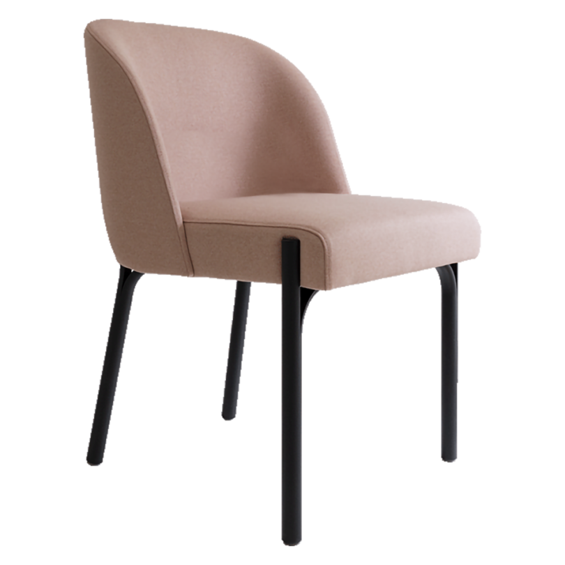 Sidechair with lacquered steel legs. Seat and back upholstered.