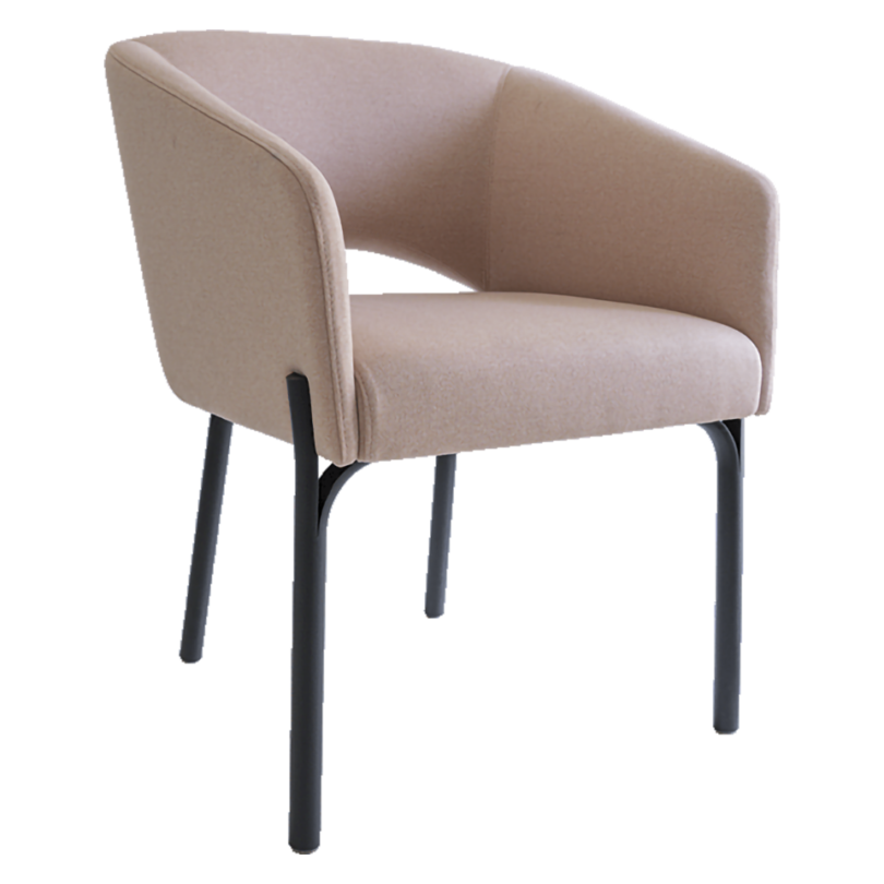 Armchair with an upholstered seat on a matt lacquered steel base