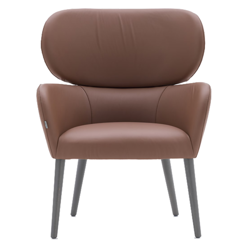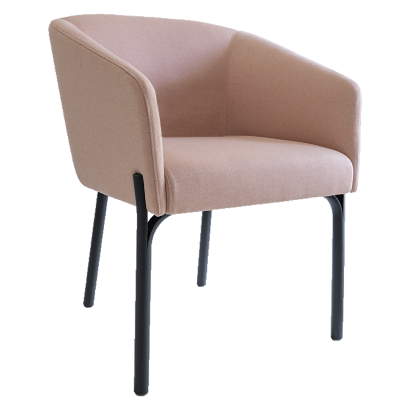 Armchair with lacquered steel legs. Seat and back upholstered.