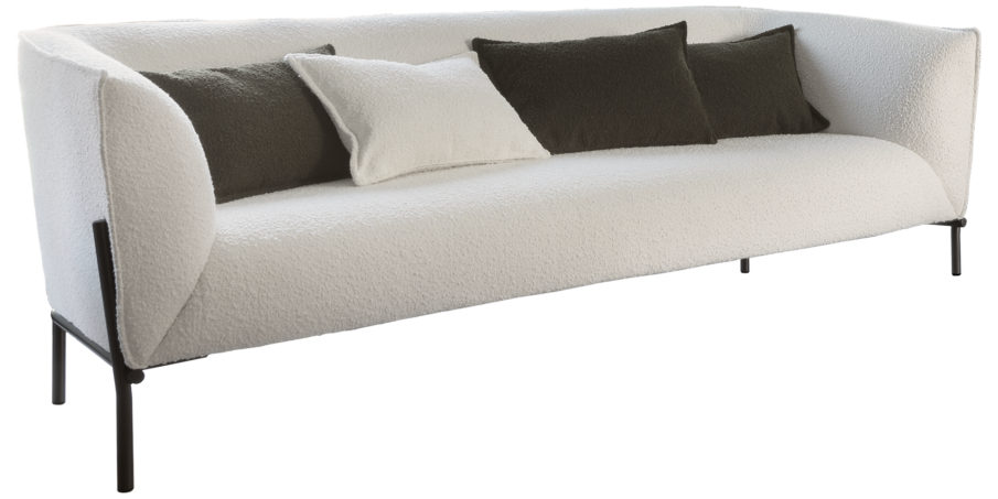 Upholstered sofa with steel frame.