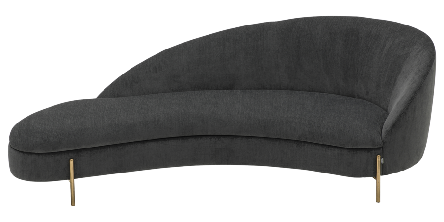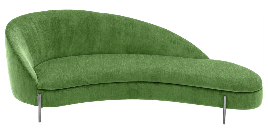 Lounge chair with low backrest and sled frame with soft upholstered seat shell.