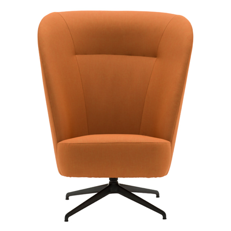 Easychair large, molded foam shell. Upholstered onto the frame. Webbed seat. With 4-spoke aluminum swivel base.