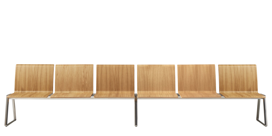Chair with recycled polypropylene seat on a powder coated or chromium plated tubular steel sled based frame. Stackable and linkable. Tested to 360 lbs weight load.